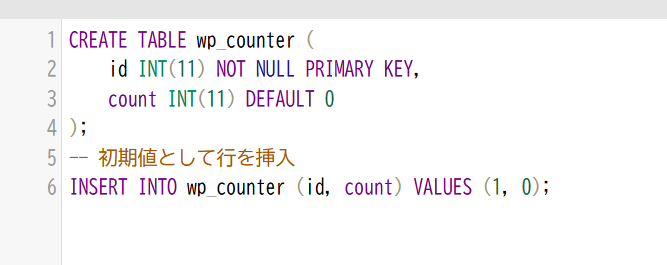 INSERT INTO wp_counter (id, count) VALUES (1, 0);